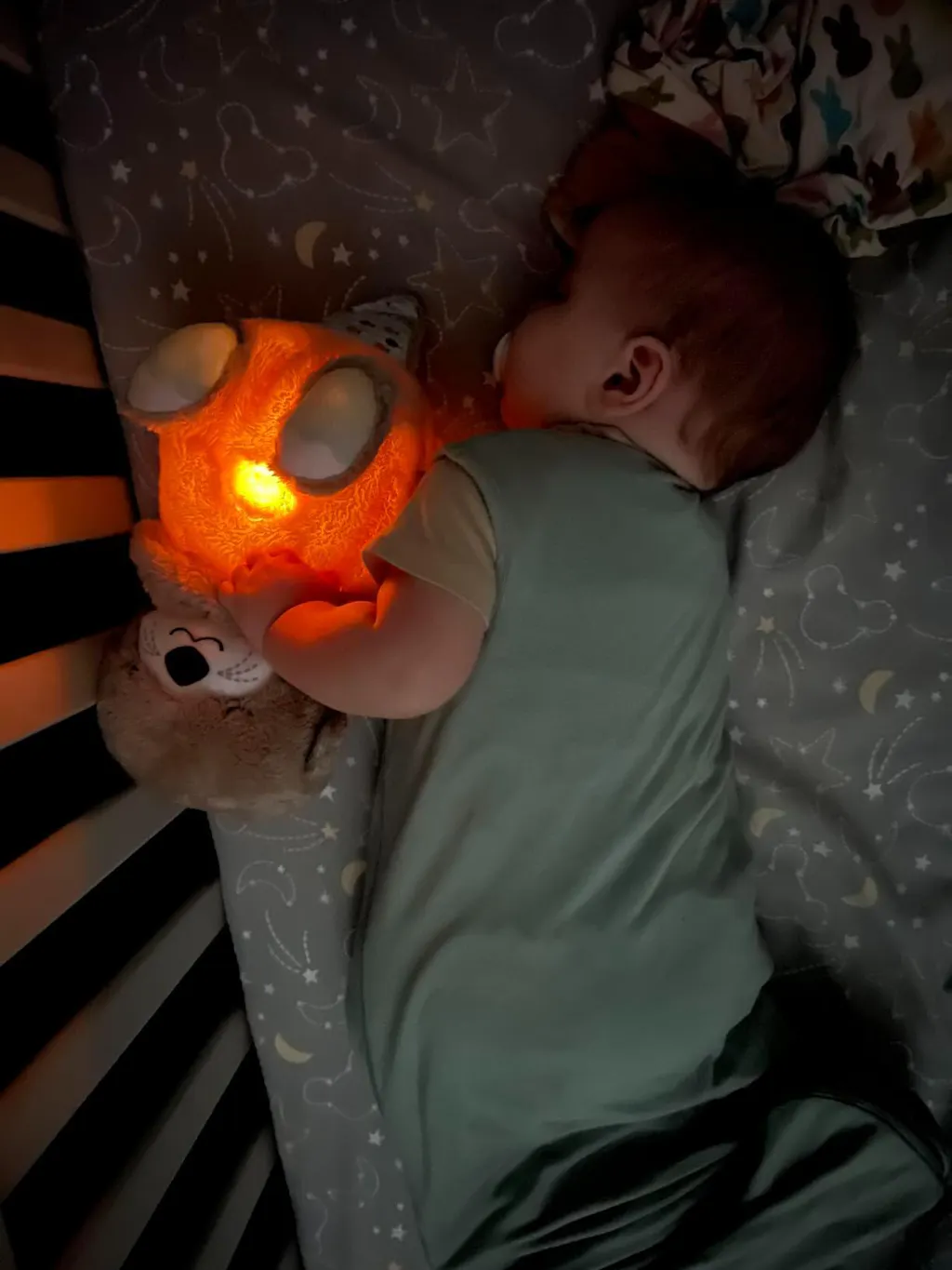 🌙 Une lumière douce et rassurante Pas d'éblouissement, pas de lumière bleue. Juste une lumière chaude et enveloppante qui aide bébé à distinguer la nuit du jour.